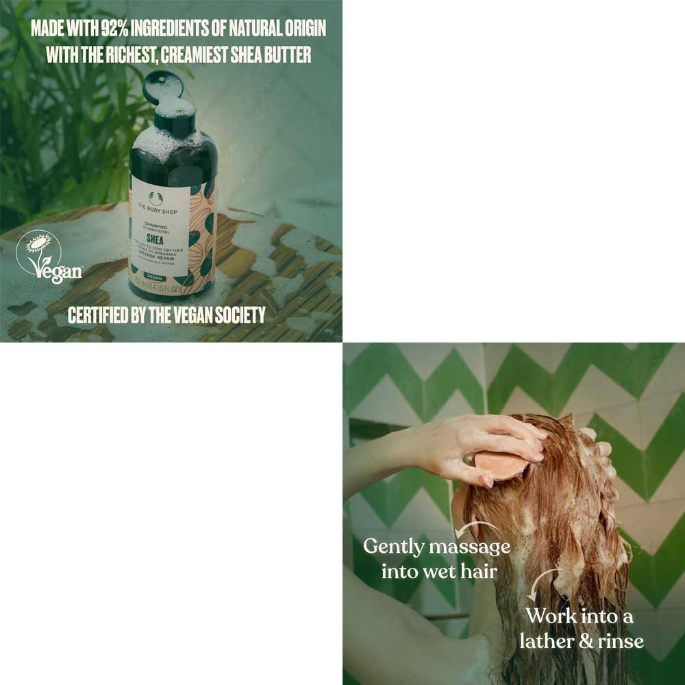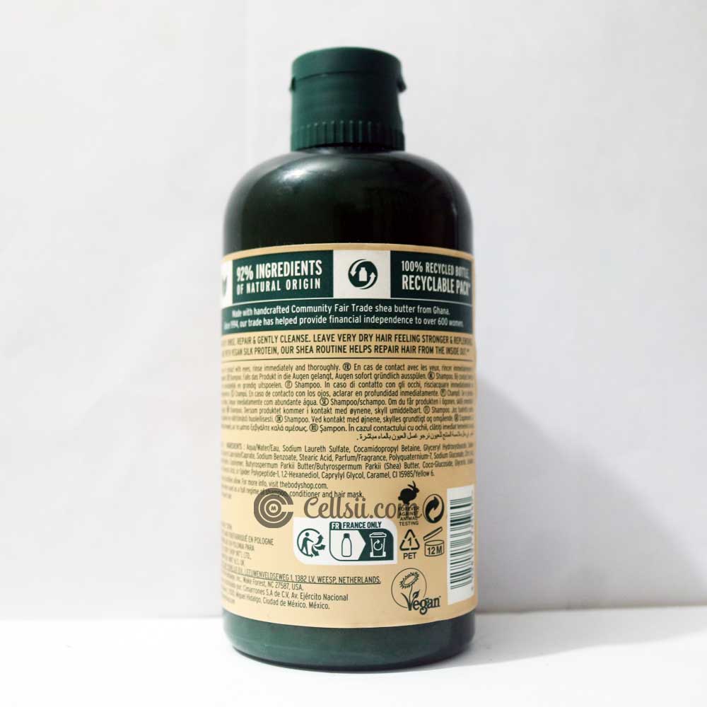 Buy The Body Shop Shea Intense Repair Shampoo 250ml online in Bangladesh from Cellsii.com at the best price. The Body Shop Shea Butter Richly Replenishing Shampoo is enriched with Community Trade shea butter from Ghana, handcrafted by women who have used shea butter to intensely nourish dry hair for generations. This gentle cleansing formula won’t leave your hair feeling stripped of moisture and it’s perfect for dry hair that is prone to damage. Treat your hair to this nutty goodness to enjoy locks that look healthier and feel richly replenished.