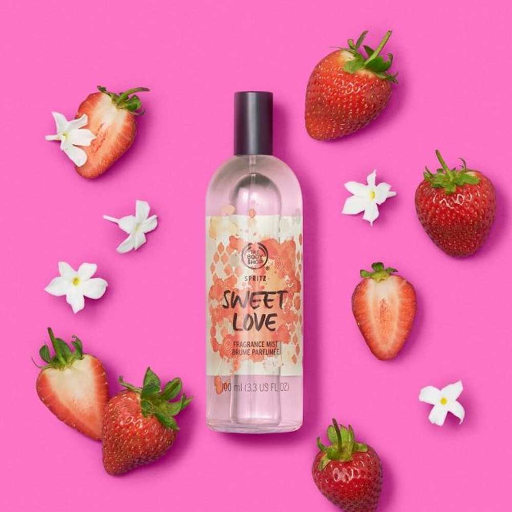 - Sweet Love is a fruity and gourmand spritz infused with soft notes of strawberry and jasmine.