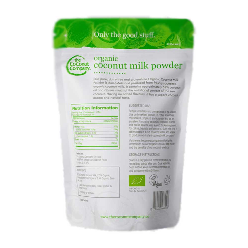 Buy The Coconut Company Organic Vegan Coconut Milk Powder 250g online from cellsii.com. Our organic certified, dairy-free coconut milk powder is produced from freshly-squeezed coconut milk. It contains 65% coconut oil content and retains much of the nutritional content of the raw coconut. It has a natural and superb aroma. Far less wastage than traditional liquid milk, as you can use as little or as much as you need, then simply seal up the pack.