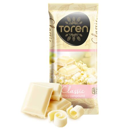 Buy Toren classic white milky compound chocolate online in Bangladesh from Cellsii.com. Compound chocolates differ from regular chocolates in that cocoa butter is replaced with vegetable fats, creating a chocolate coating that will melt and turn into a hard shell at room temperature. Compound chocolates have many uses and are available in dark, milk and white varieties.