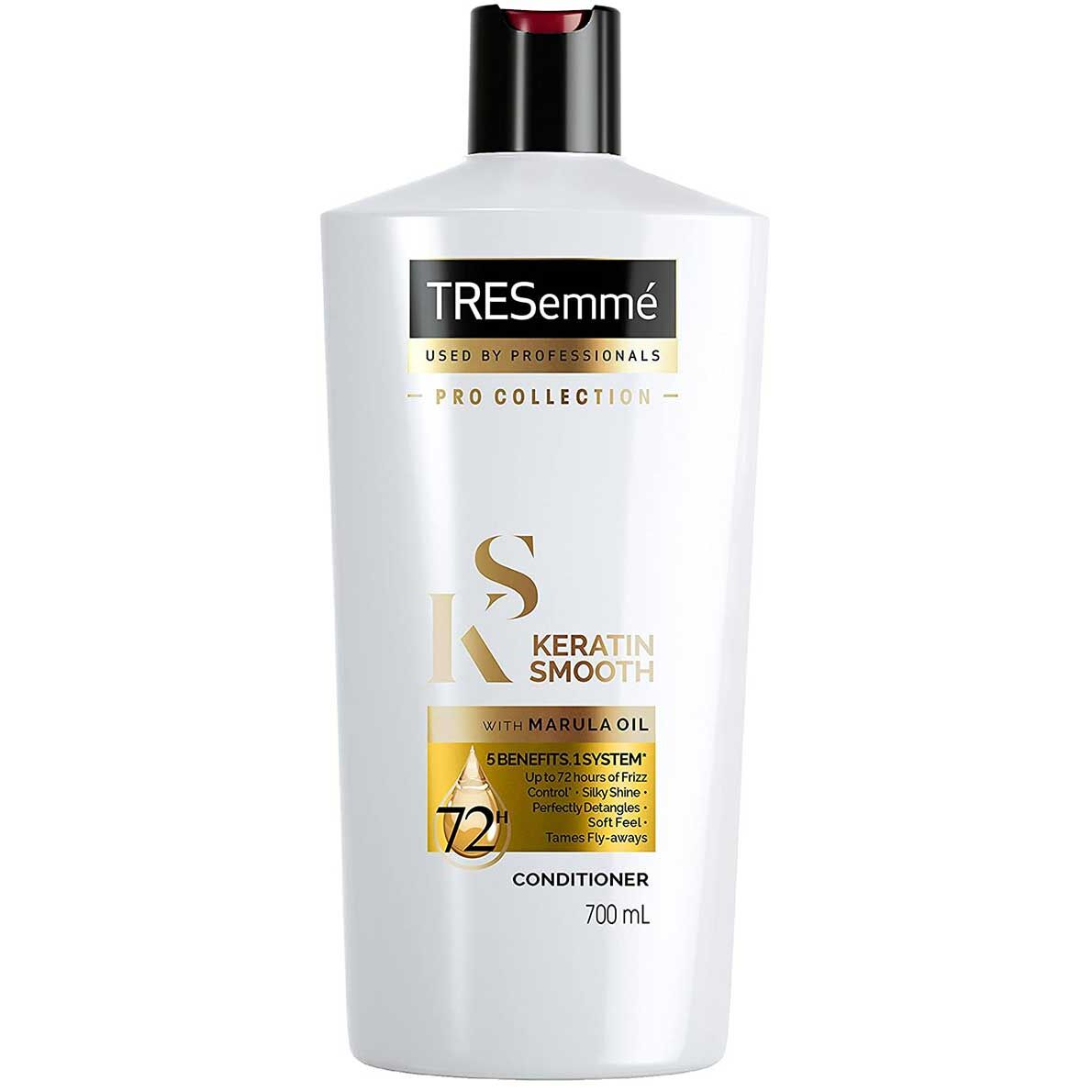 Buy TRESemme Keratin Smooth Conditioner with Marula Oil 700ml online in Bangladesh from Cellsii.com. TRESemmé Keratin Smooth, with Keratin & Marula oil from Africa, gives you 72 hours of frizz control & a 5 smoothing benefits in 1 system. This hair repair conditioner detangles knots, boosts shine, adds softness and tames flyaways.