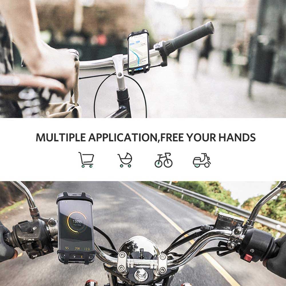 - Easy installation in seconds: Mobile phone bicycle mount is designed with 3-stage design, therefore perfectly adapted for different handlebars of diameter (17-30 mm), e.g. Mountain bike, motorcycle, stroller, shopping cart. Also, no tool, no screw for attaching needed. Simply put the rubber band on the metal buckle or loosen it, i. You can swap or withdraw quickly and not worry about being stolen.