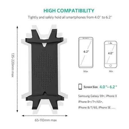 - Universal compatibility: Ugreen handlebar holder bicycle is suitable for most cell phones or GPS from 4 to 6.2 INCH like iPhone X / iPhone 8 / iPhone7 / iPhone7 Plus / 6 / 6s, Samsung Galaxy S9 Plus / S8 / S7 / S7 Edge Plus / A5 / A3 / J5 / J7 / Note 8, Huawei P20 / P20 Lite / Huawei P9 / Huawei P10, Huawei Mate 10 / Mate 9 / Mate S, Oneplus 3T, HTC, Nokia, etc.
