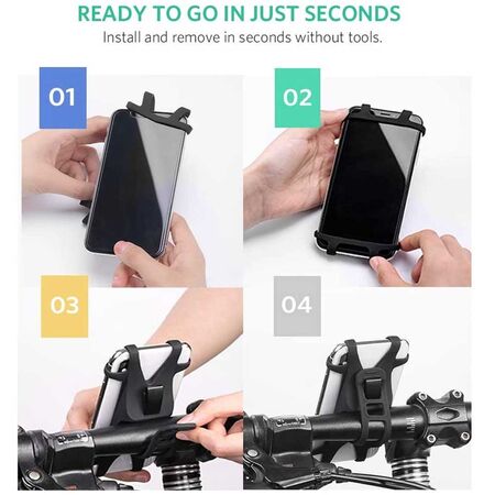 Buy Ugreen Bike Mount Phone Holder online from Cellsii.com. Ugreen Bike Mount Phone Holder for your Smartphone is made of premium silicone material, flexible phone holder clamp and four sets of adjustable hooks and eyes, so this bicycle smartphone holder can absorb most of the shocks when your bike is on bumpy rocky roads. In addition, the soft material will avoid scratches, no scratches on the screen and surface of your Smartphone. 4-6 Inch suitable for bicycle or motorcycle enthusiasts.