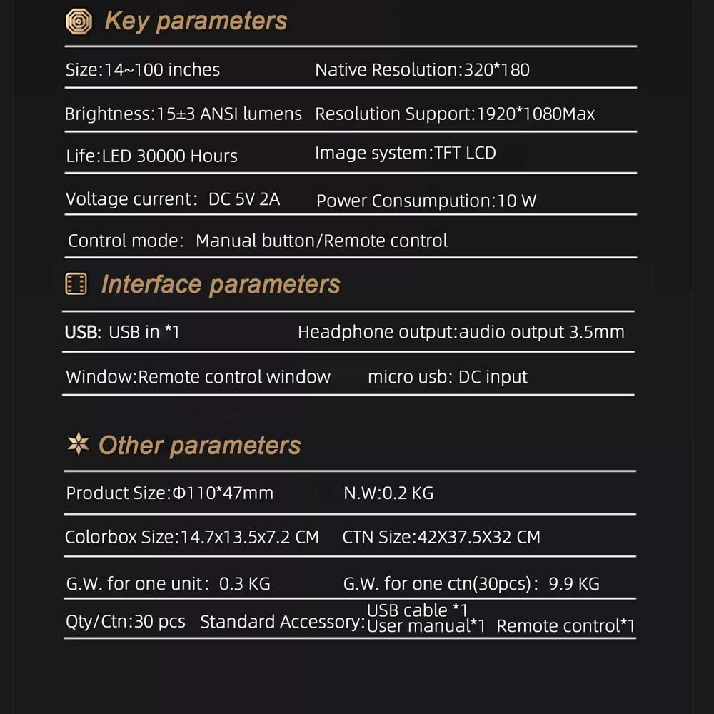 - Flexible zoom, projection distance 0.6-4 meters, projection size 14 ''100 ''