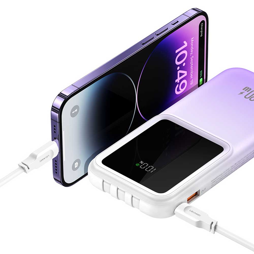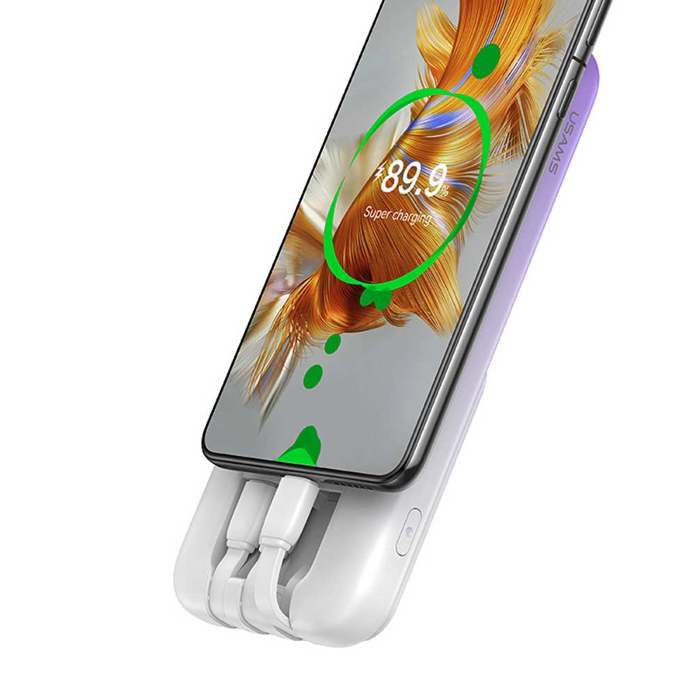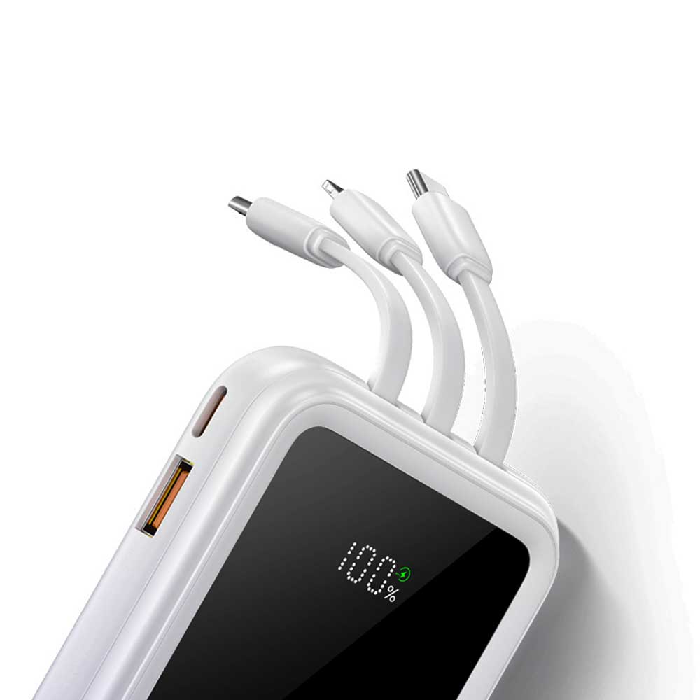 Buy Usams US-CD212 PD20W+QC3.0 Dual Port Fast Charging Digital Display Power Bank 20000mah with Cable online in Bangladesh from Cellsii. Usams digital display fast charging power bank with 3 cables. With 3 cables more convenient Type-c, Lightning, Micro data cables, no need to take spare cables. 3 cables + 2 ports, charge for 5 devices at the same time. Single port output power up to 22.5W, efficient and fast charging.