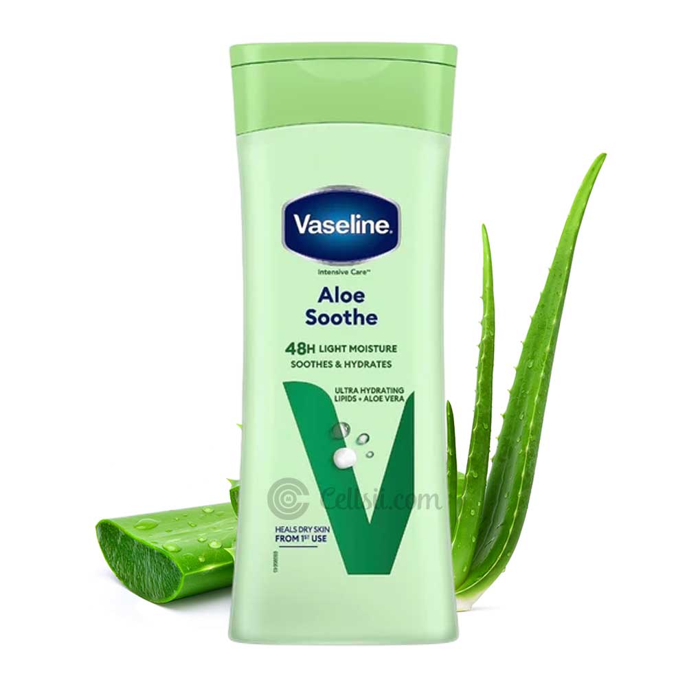 Buy Vaseline Aloe Soothe 48h Light Moisture Soothes & Hydrates Body Lotion 400ml online in Bangladesh from Cellsii. Vaseline Aloe Soothe Body Lotion is a refreshing, lightweight moisturizer designed to deliver instant hydration and soothing relief to dry and sensitive skin. Infused with pure aloe vera extracts and micro-droplets of Vaseline Jelly, it cools and nourishes your skin while providing up to 48 hours of non-greasy moisture.