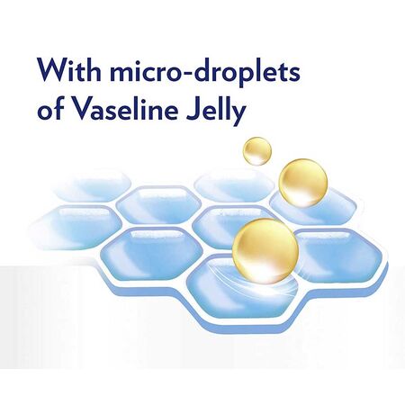 - This unscented body care contains microdroplets of Vaseline Jelly to lock in moisture