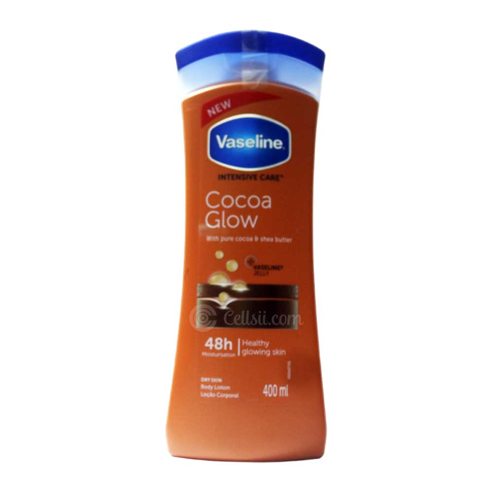 Buy Vaseline Intensive Care Cocoa Glow Body Lotion 400ml online in Bangladesh from Cellsii. Vaseline Intensive Care Cocoa Glow Body Lotion helps keep your skin looking healthy and glowing. The rich formula combines 100 percent pure cocoa and shea butter extracts, giving your skin a natural glow and contains microdroplets of Vaseline Jelly that lock in moisture. This moisturizing lotion restores the essential moisture your skin needs with a blend of nourishing ingredients and gives skin a natural, healthy glow.