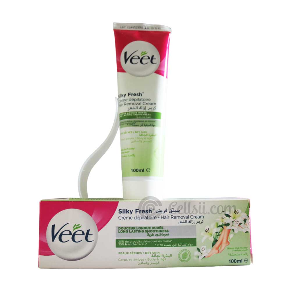 Buy Veet Silky Fresh Hair Removal Cream for Dry Skin 100ml online from Cellsii.com. It nourishes deep into the skin leaving it clean, hair free and velvety soft up to weeks. It takes just 3 minutes to banish the fuzz and make your skin clean and clear. It controls the hair growth making the unwanted hair take longer to grow back and there’s no stubbly feel to regrowth.