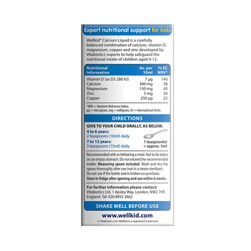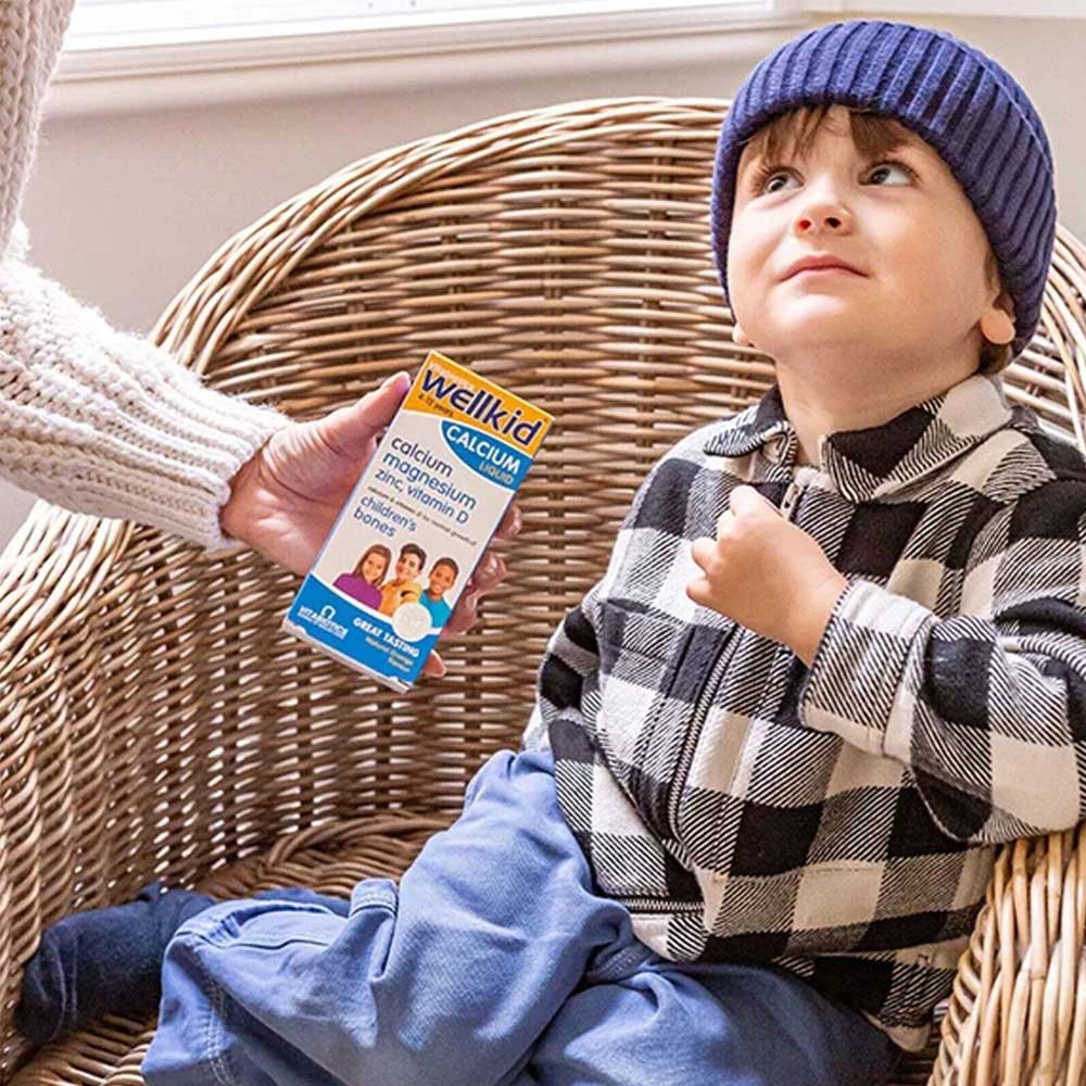- Bone support ideal for kids WellKid Calcium Liquid provides a rich source of calcium and co-factors including vitamin D, in a smooth, great tasting liquid that kids will love.