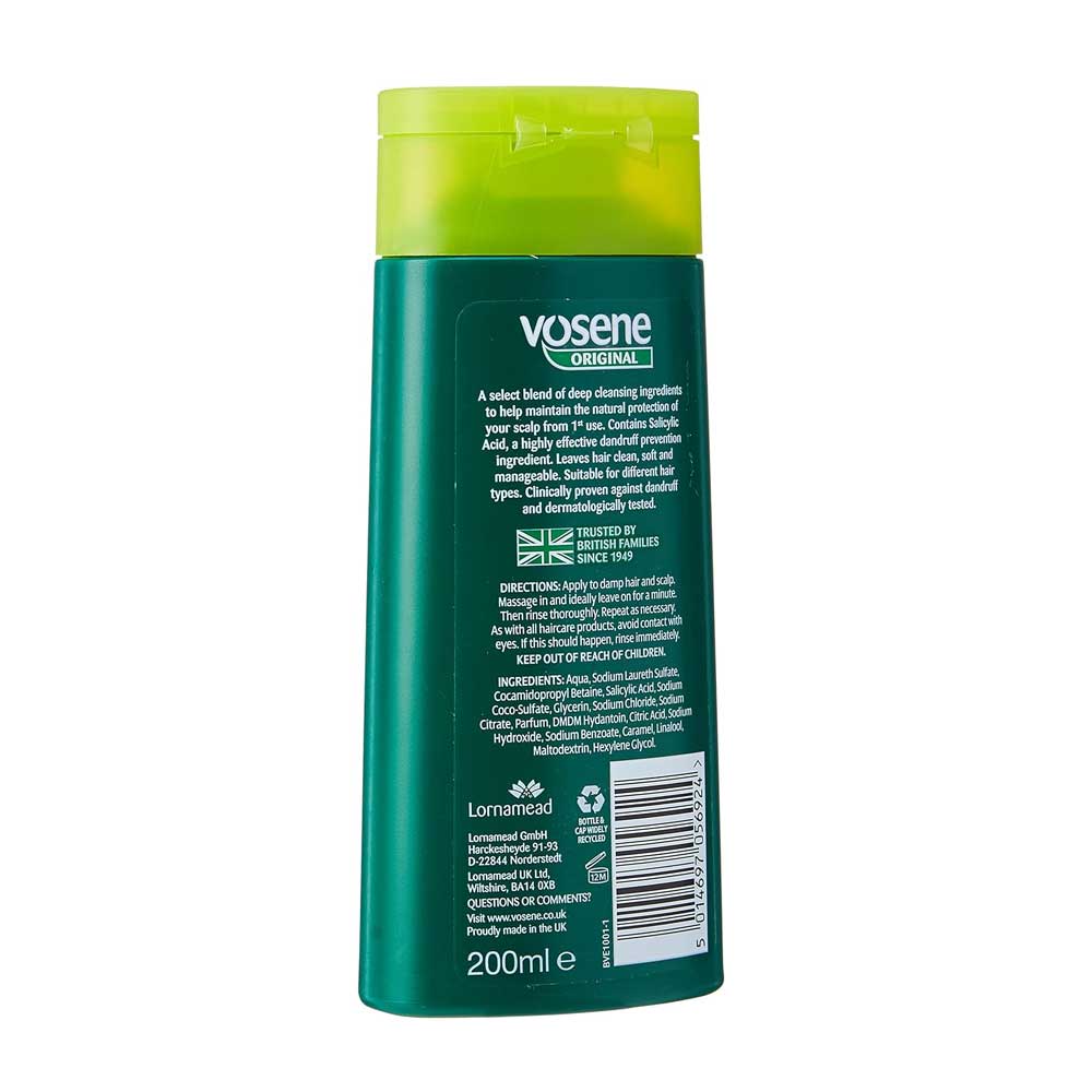 - Vosene Original Anti-Dandruff Daily Shampoo uses a select blend of deep cleansing ingredients to help maintain the natural protection of the scalp from first use.