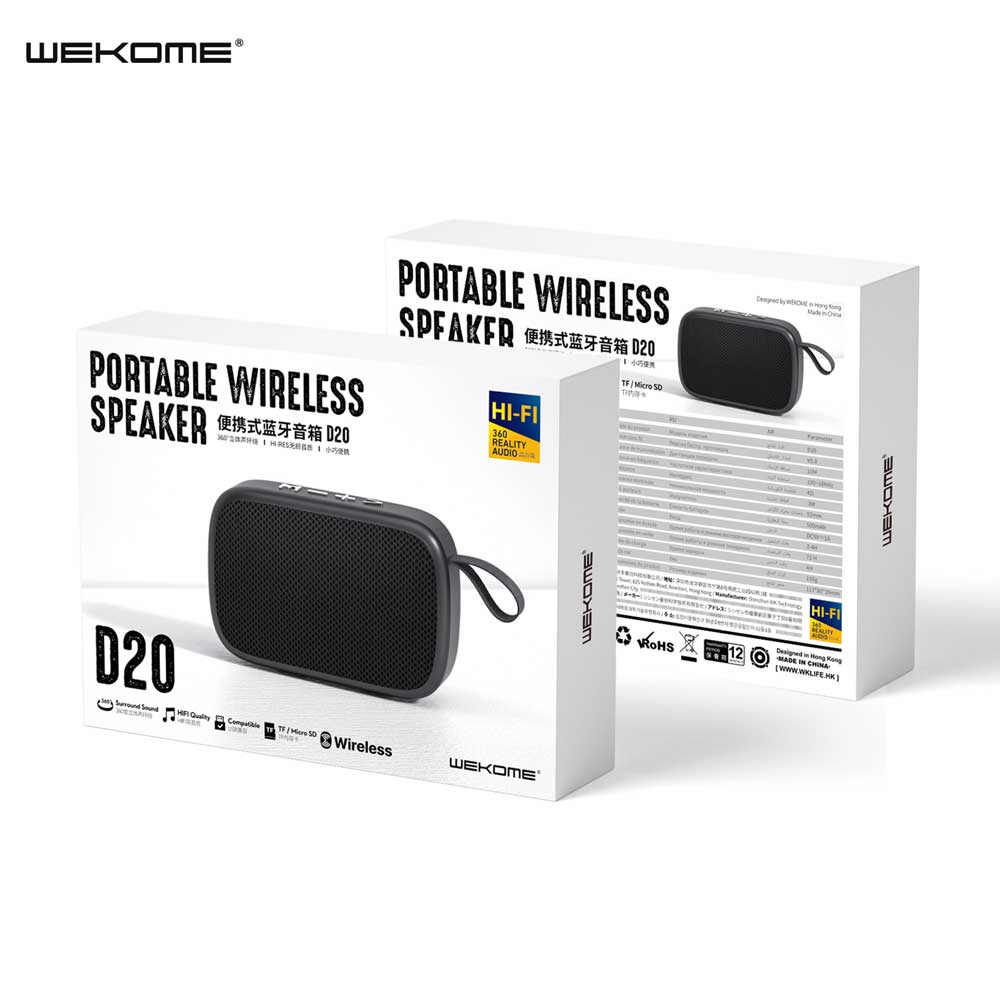 - This Wekome D20 is a portable speaker that comes with Bluetooth version 5.0. It can be connected to any Bluetooth-related device and 3 watt powerful speaker provides clear sound quality.