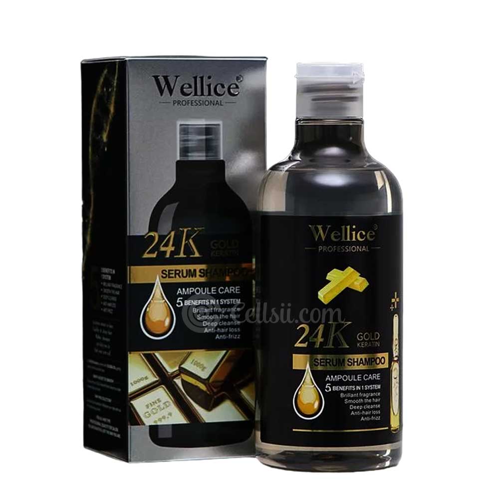 Buy Wellice Professional 24K Gold Keratin Serum Shampoo 500ml in Bangladesh from Cellsii. The Wellice Professional 24K Gold Keratin Serum Shampoo is a luxurious hair care product designed to enhance the health and appearance of your hair. Infused with 24K gold and keratin, this shampoo aims to provide a high level of nourishment and rejuvenation.
