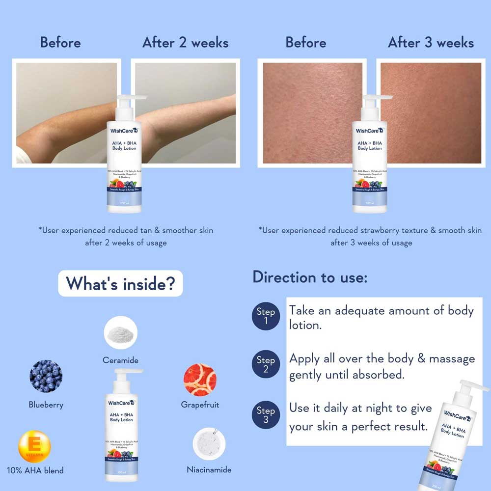 WishCare AHA + BHA Body Lotion for Smooths Rough & Bumpy Skin 200ml
