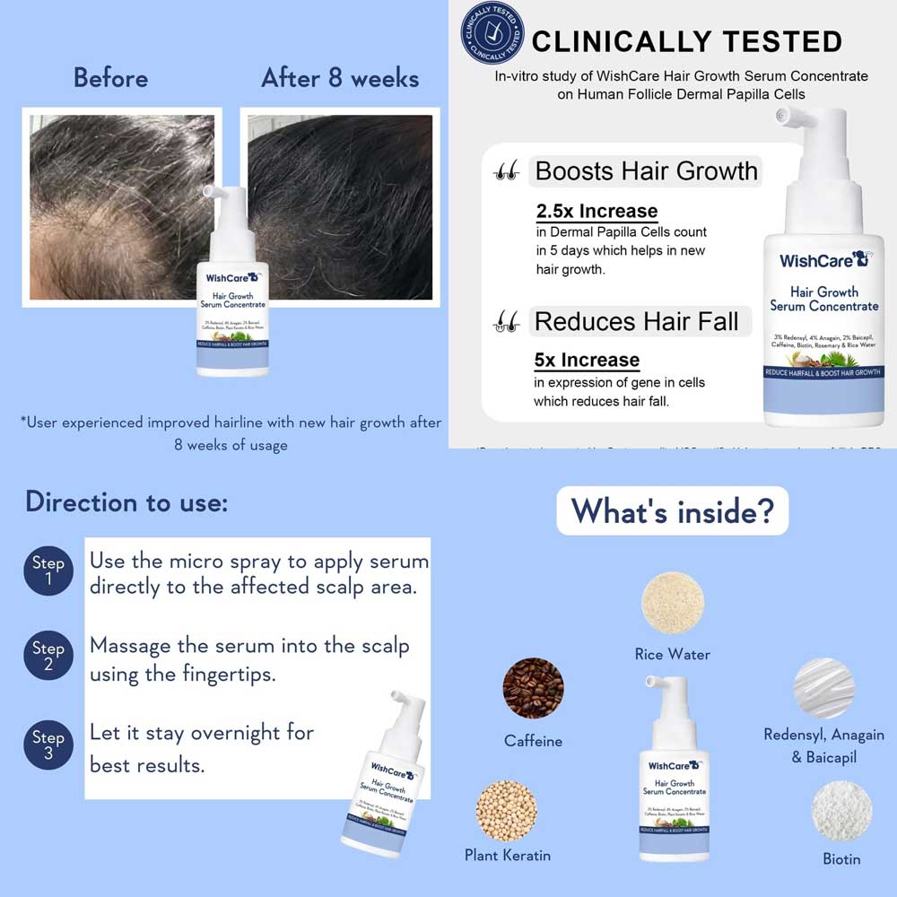 Buy WishCare Hair Growth Serum Concentrate 30ml online in Bangladesh from Cellsii. WishCare Hair Growth Serum Concentrate is a powerhouse formula designed to promote healthier, stronger, and thicker hair. Enriched with natural and scientifically proven ingredients, this serum targets hair loss, stimulates hair follicles, and nourishes the scalp for optimal hair growth. Its lightweight, non-greasy texture makes it easy to apply and suitable for all hair types.