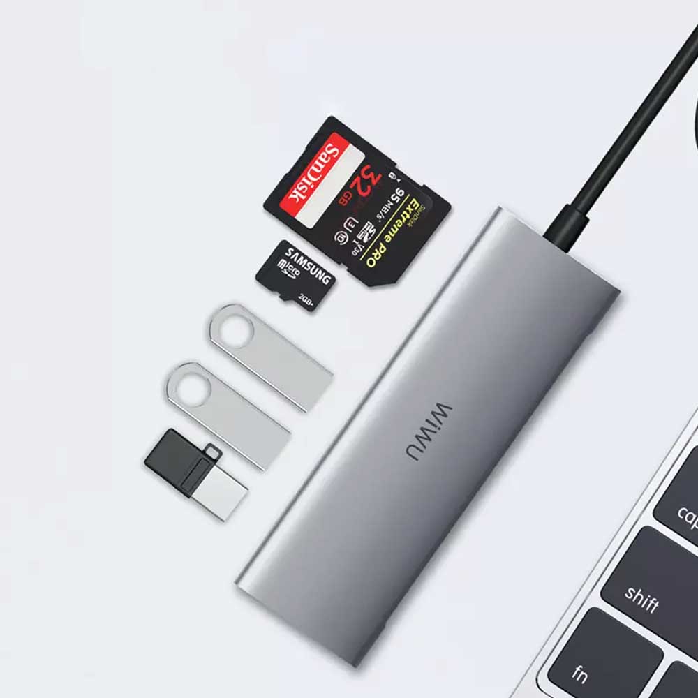 Buy WiWU Alpha 532ST 5 in 1 USB Type-C Hub Adapter online in Bangladesh from Cellsii.com. WiWU Alpha 532ST aluminium case design, perfect for new laptops with USB-C port. This adapter is multiple ports type c hub with 3* USB3.0+ TF+SD card slow. And it is also Super speed USB 3.0 ports allow you to connect keyboard, mouse, hard drive,etc to macbook Pro.