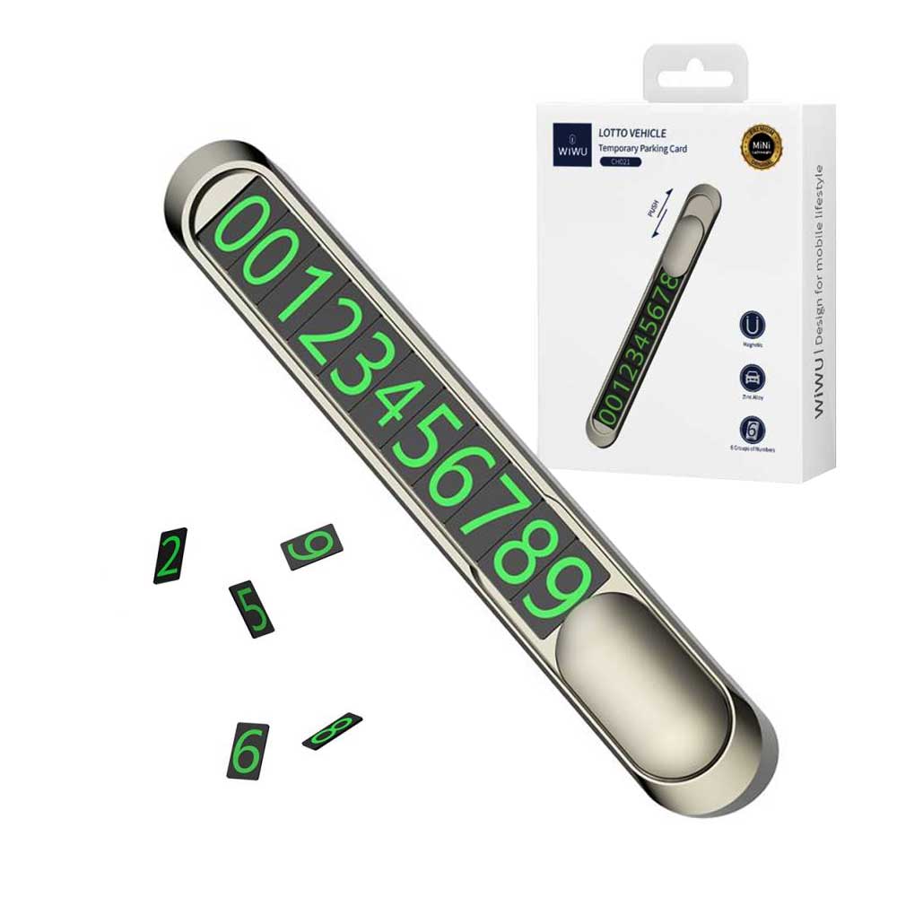 Buy WiWU CH-021 Lotto Vehicle Temporary Parking Card online from Cellsii.com. WiWU Lotto Vehicle CH021 luminous car number display board easy to see in the dark, sturdy metal design, super compact. A car parking number that you can use in your vehicles, on which you can write your personal number.
