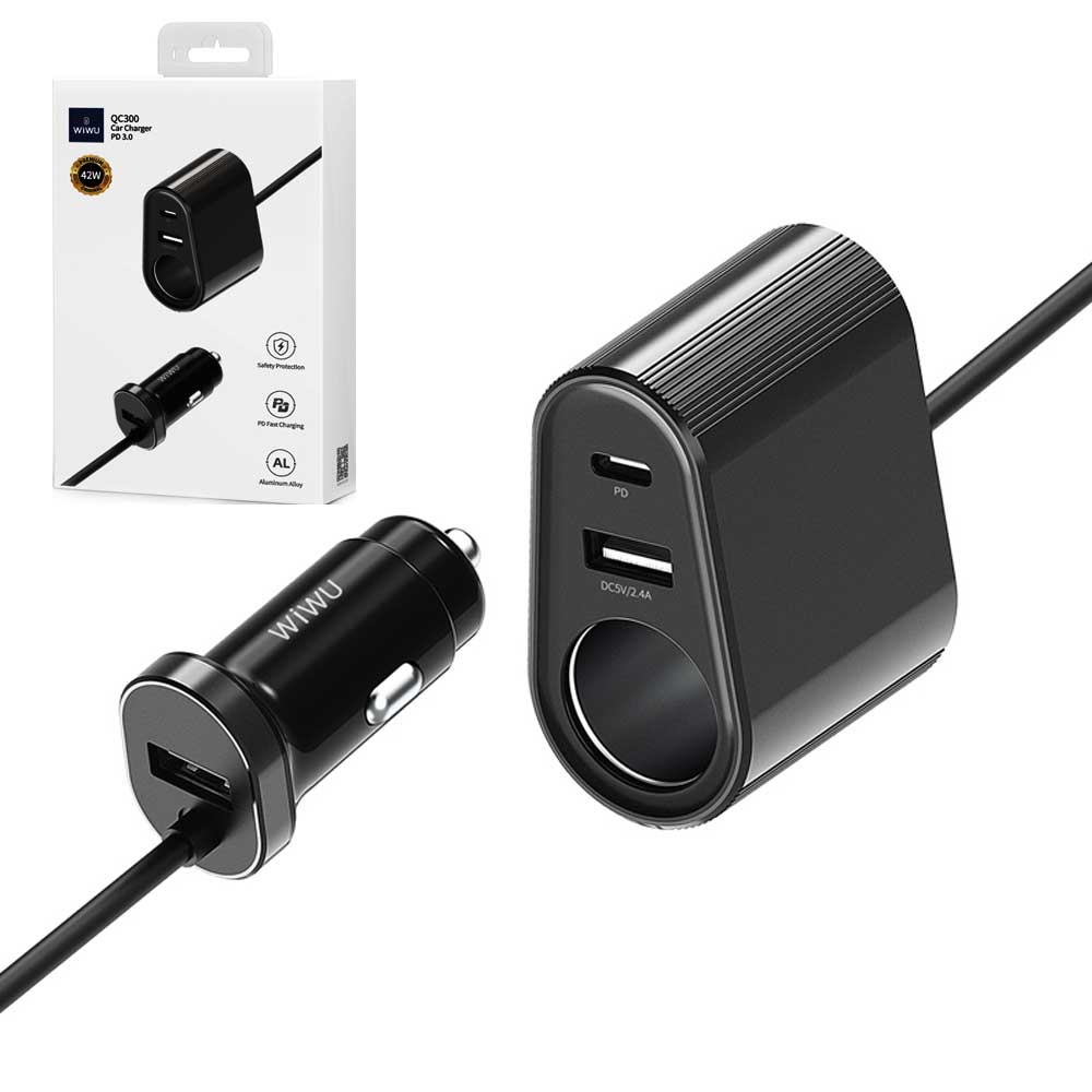 Buy WiWU QC300 Type C Multi-functional PD 42W Car Charger online from Cellsii.com. WiWU QC300 built-in smart identification chip. Automatically matches the current required by your device. Dual socket with PD and Usb charging interface for back seat. Compatible with cigarette lighter input of every vehicle.