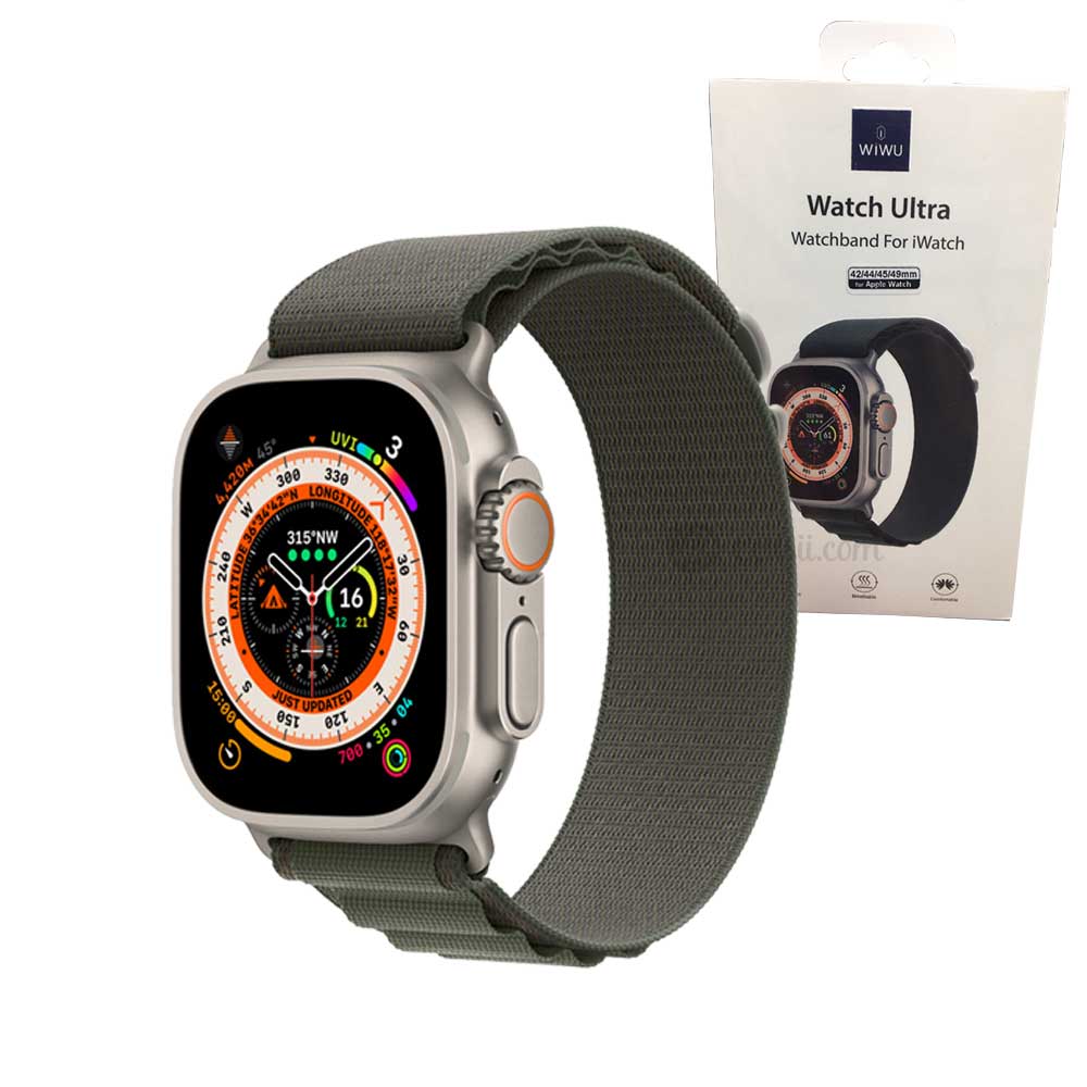 Buy WiWU Watch Ultra Watchband for iWatch online from Cellsii.com. The aerospace-grade titanium case strikes the perfect balance of weight, durability and corrosion resistance. The rugged Alpine Loop is made from two textile layers woven together into one continuous piece without stitching, with a titanium G-hook to ensure a secure fit.