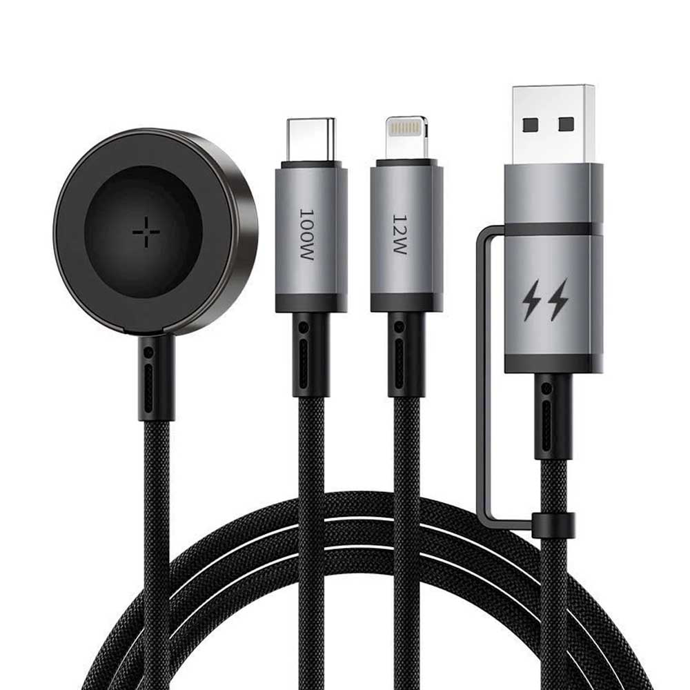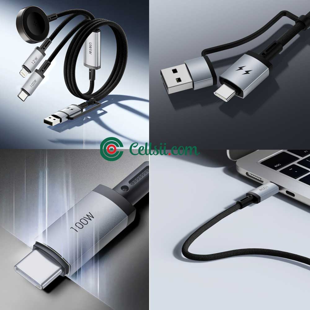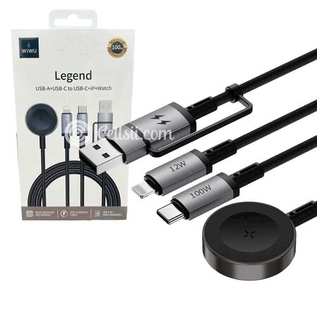 Shop online in Bangladesh, buy WiWU Wi-C050 Fast Charging Cable from Cellsii.com at best price. The WiWU Wi-C050 Legend 3-in-2 100W Fast Charging Cable is a versatile solution designed to charge multiple devices simultaneously. This cable is compatible with a wide range of devices, including various Apple Watch models, iPhones, iPads, and devices supporting USB-C charging.