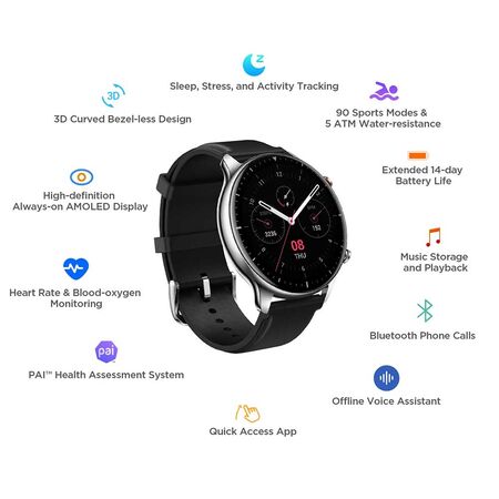 - Bluetooth Call Function and Offline Voice Assistant. Liberate Your Hands: After connecting your Amazfit GTR 2 to your mobile phone, the Bluetooth call feature lets you answer calls on your watch via the built-in microphone and speaker. You can also perform voice operations on your watch without internet access through the offline voice control feature including turning on sports modes or opening the heart rate monitoring function.