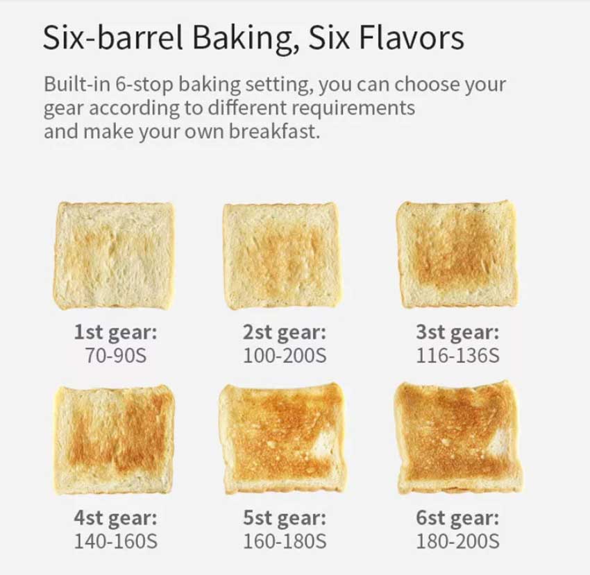 - Six-level baking for providing six tastes, making delicious breakfast for your families.