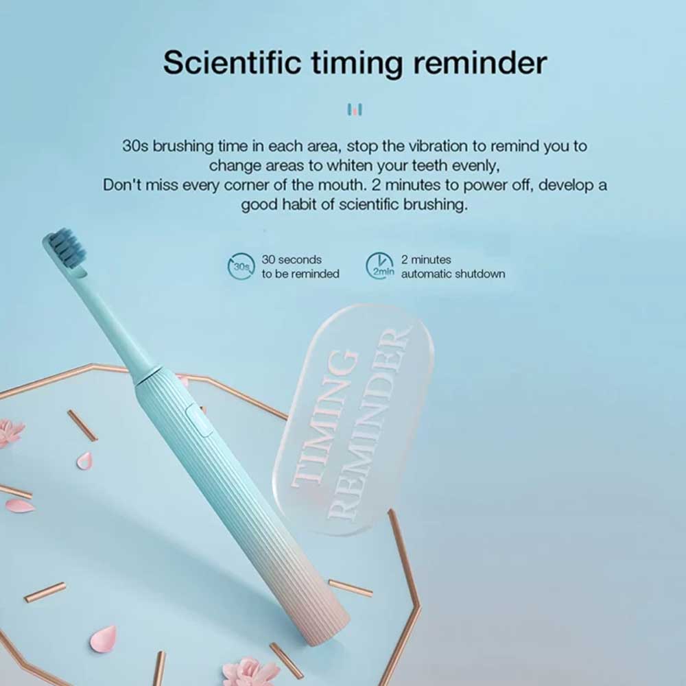 - 30s brushing time in each area, stop the vibration to remind you to change areas to whiten your teeth evenly. Don’t miss every corner of the mouth. 2 minutes to power off, develop a good habit of scientific brushing.