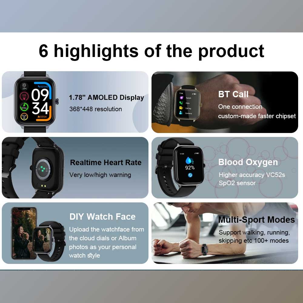 - Equipped with Bluetooth 5.0, the watch can easily connect to your smartphone for seamless notification alerts, call control, and music management.