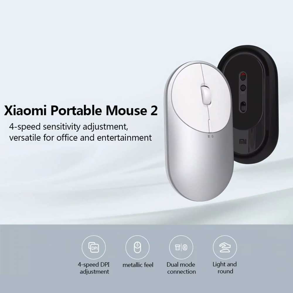 Buy Xiaomi Mi Portable Wireless Mouse 2 online from Cellsii.com. Mi portable mouse 2 features an anodized aluminum alloy body with a sandblasted surface, dual-tone finish. It is worth noting that this mouse is not entirely made of aluminum as it includes materials like ABS and polycarbonate. The big innovation is the integrated 2.4 GHz wireless receiver, which can be used in addition to the Bluetooth 4.2 connection.