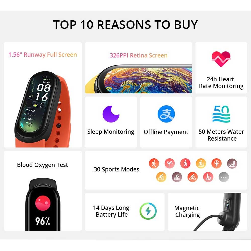 - Precisely cut edges Exquisite classic shape: Mi Smart Band 6 sticks to a classic shape with an innovative large screen and rounded edges, making it comfortable to wear and look.