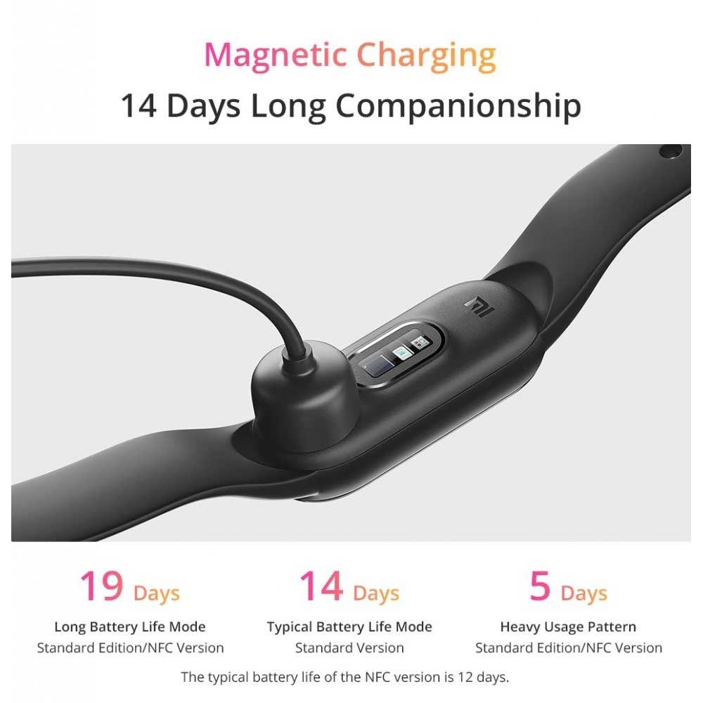 - Magnetic charging A battery that lasts: 5Days Battery life with heavy use, 14Days Battery life in normal mode, 19Days Battery life in power-saving mode.