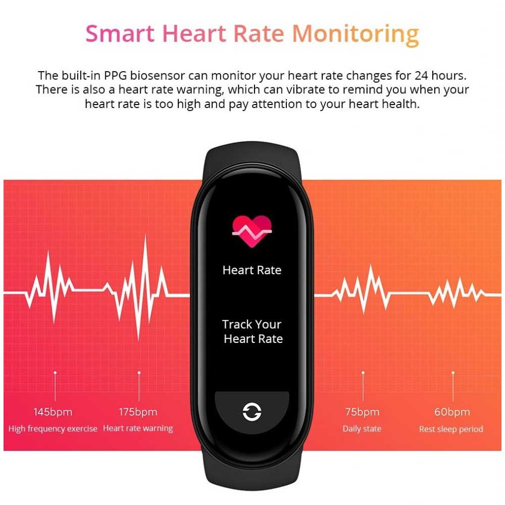 - 24-hour smart heart rate monitoring With your health in mind: The built-in PPG biosensor measures your heart rate, keeping track of ups and downs when exercising and resting.