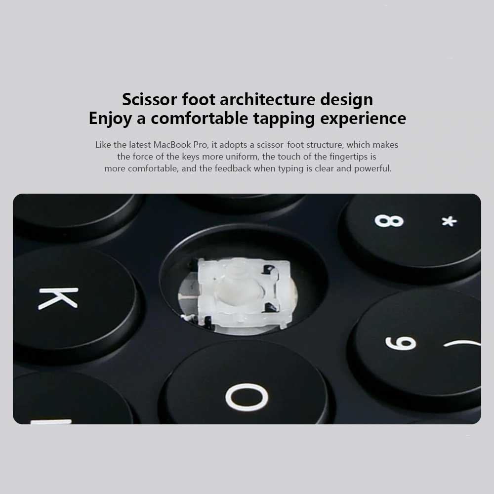 Buy Xiaomi MIIIW Bluetooth Dual mode Keyboard online from cellsii.com. Xiaomi Miiiw wireless Bluetooth keyboard is a full-size keyboard with 104 keys. It can easily achieve the connection switch between Bluetooth and USB, and is compatible with multiple devices. The keyboard comes with circular keys which is made from white ABS plastic. All the characters on the keyboard are carved by laser, so it is not only very clear, but also durable.