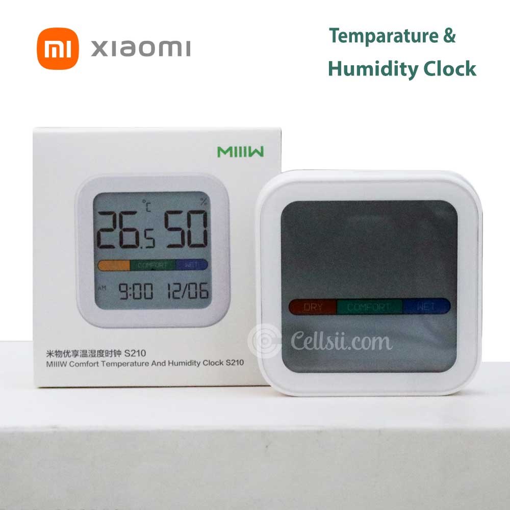 - The clock integrates a thermometer and hygrometer MIIIW S210, a seemingly simple but extremely necessary equipment for every space. The device helps you quickly monitor time, temperature and humidity, thereby making appropriate adjustments for your living environment.