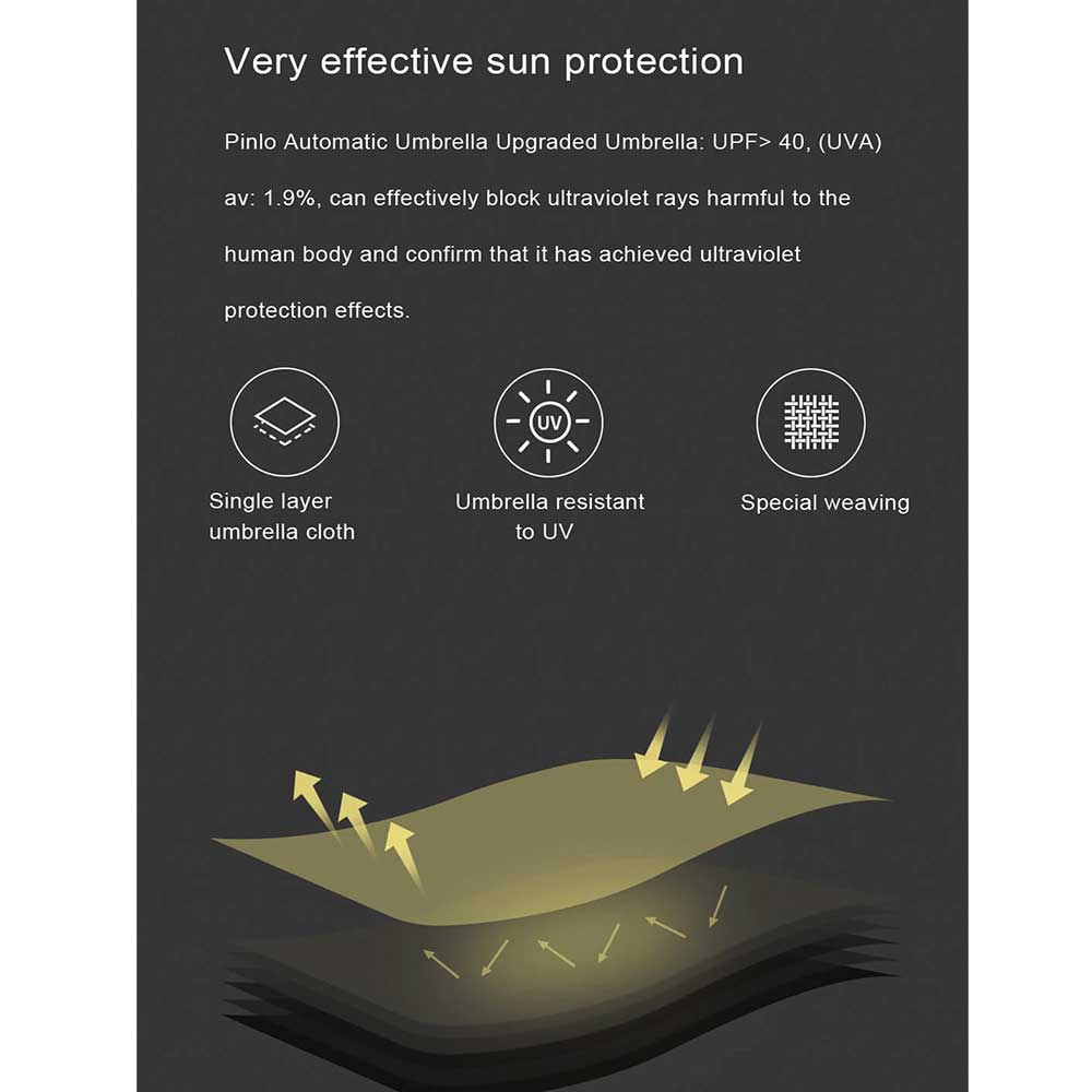 Buy Xiaomi Pinlo Automatic Umbrella online from Cellsii.com. This is lightweight, waterproof fabric with a high degree of shading to protect against harmful UV rays in the sun. It is one button to open and close automatically and safely. It is 100% Cotton. Its Sturdy and windproof structure to help you tackle the storm.