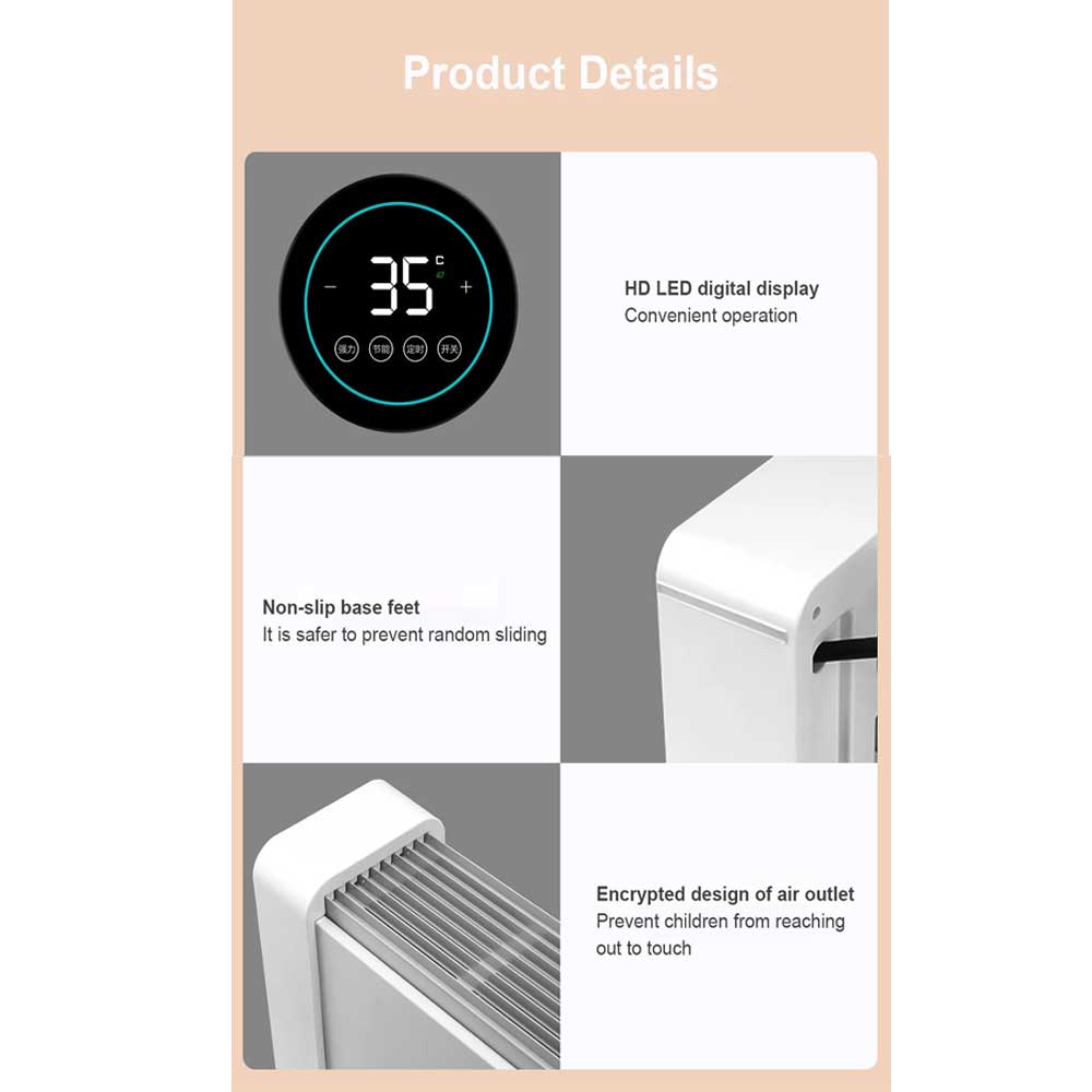 - One-key ECO energy-saving mode, intelligently controls the indoor temperature, keeps the warmth constant, the temperature drops, automatically reheat, if the temperature is too high, automatically downgrade the constant temperature heating, energy-saving and power-saving and worry-free.