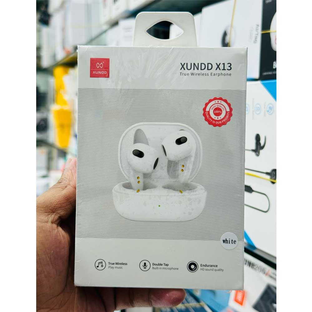 Buy Xundd X13 True Wirelesss Earbuds online from Cellsii. Enjoy longer music time with a charging case. 10mm speaker driver produces balanced bass&clear treble sound. Auto pairing when opening the charging case after the first connection. Wireless earbuds with transparent charging case Bluetooth 5.1, 250H standby. Quickly operate the core function.