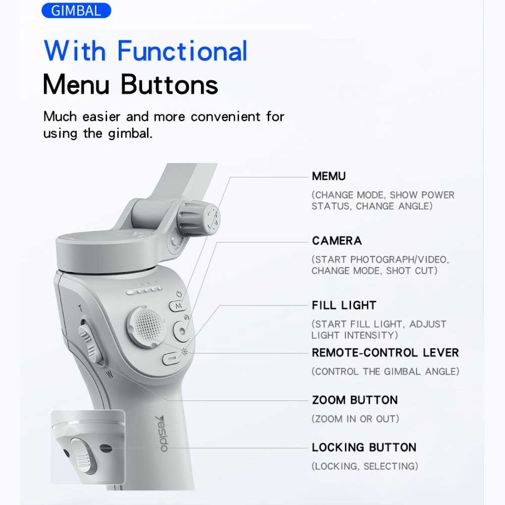 Buy Yesido SF18 360 Ai Auto Face Tracking Handheld BT Mobile Gimbal Stabilizer online from Cellsii. Yesido gimbal much easier and more convenient for using the gimbal. Help to get a good photograph. 3 times short pressing to the locking button. Easily exchange the different angle.