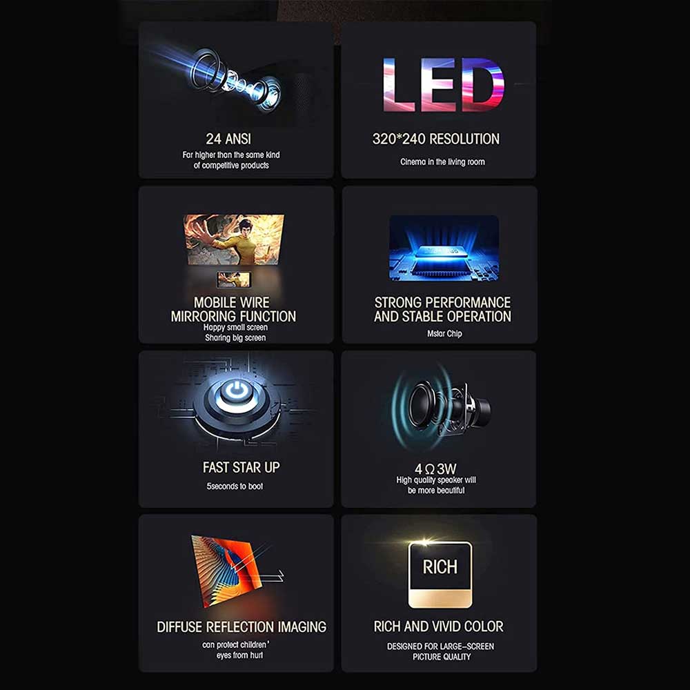 - Projection size: 16-100 inches
