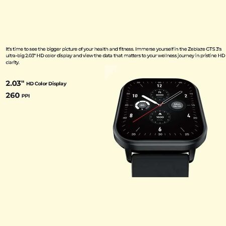 - It's time to see the bigger picture of your health and fitness. Immerse yourself in the Zeblaze GTS 3's ultra-big 2.03" HD color display and view the data that matters to your wellness journey in pristine HD clarity.